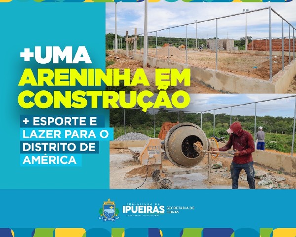 Com a nova construção, a gestão municipal atinge a marca histórica de 12 equipamentos esportivos, consolidando o maior programa de infraestrutura de lazer da história da cidade. As máquinas já estão em campo no distrito de América. A Prefeitura de Ipueiras deu início à construção de mais uma Areninha, projeto que visa transformar o cenário esportivo e social da localidade. O equipamento faz parte de um pacote de investimentos que busca levar mais saúde, lazer e qualidade de vida para as comunidades rurais e urbanas.